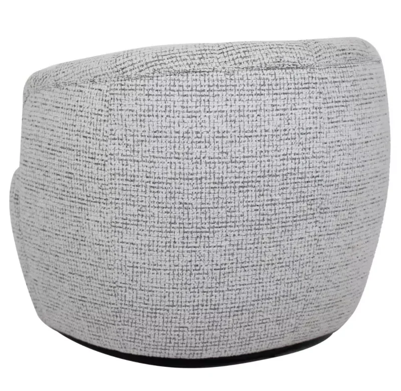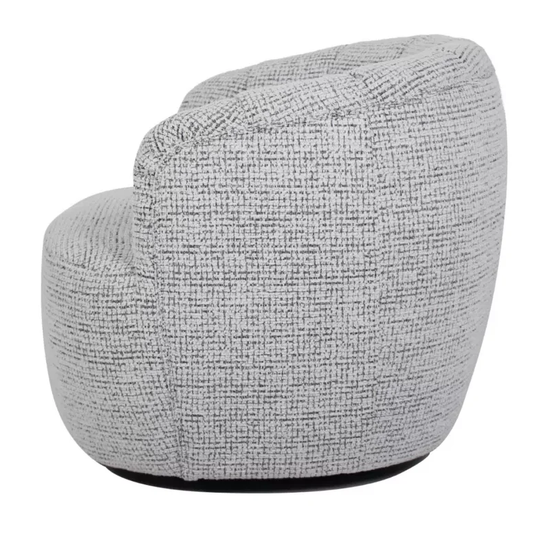 Sink into modern comfort with this elegantly curved Arlington armchair, upholstered in a soft textured fabric that adds depth and character to any space. Resting on a sleek black powder-coated metal base, it offers a smooth 360° swivel for effortless movement and versatility. A perfect balance of style and functionality, this chair is designed to elevate both contemporary and classic interiors.