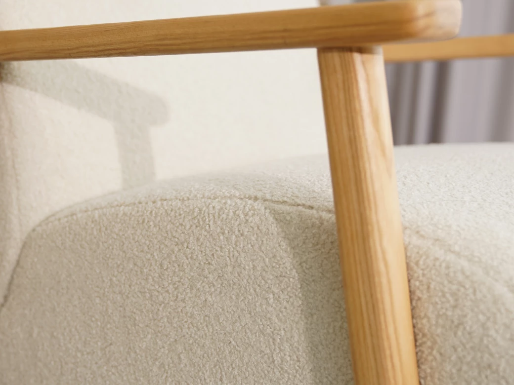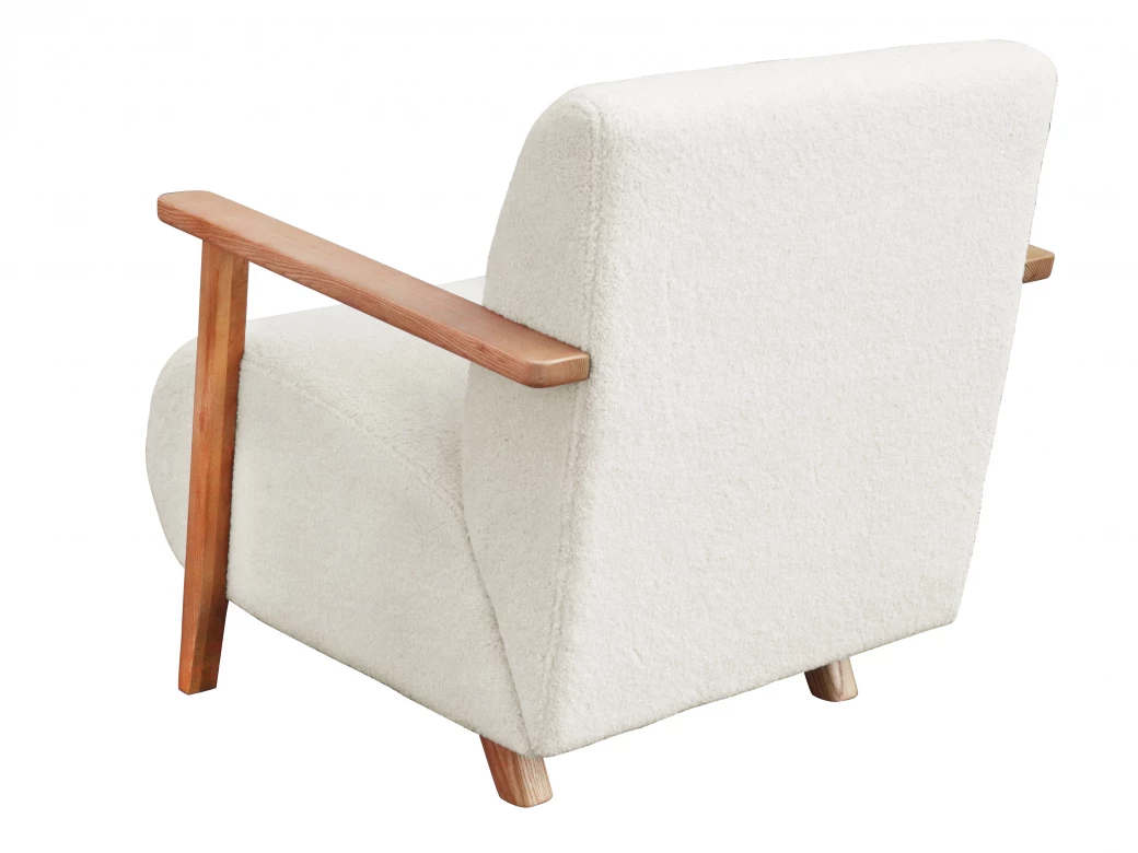 Comfort was paramount in the design of this accent chair upholstered in a lucious teddy bear fabric with timber arms - don’t fall asleep !!