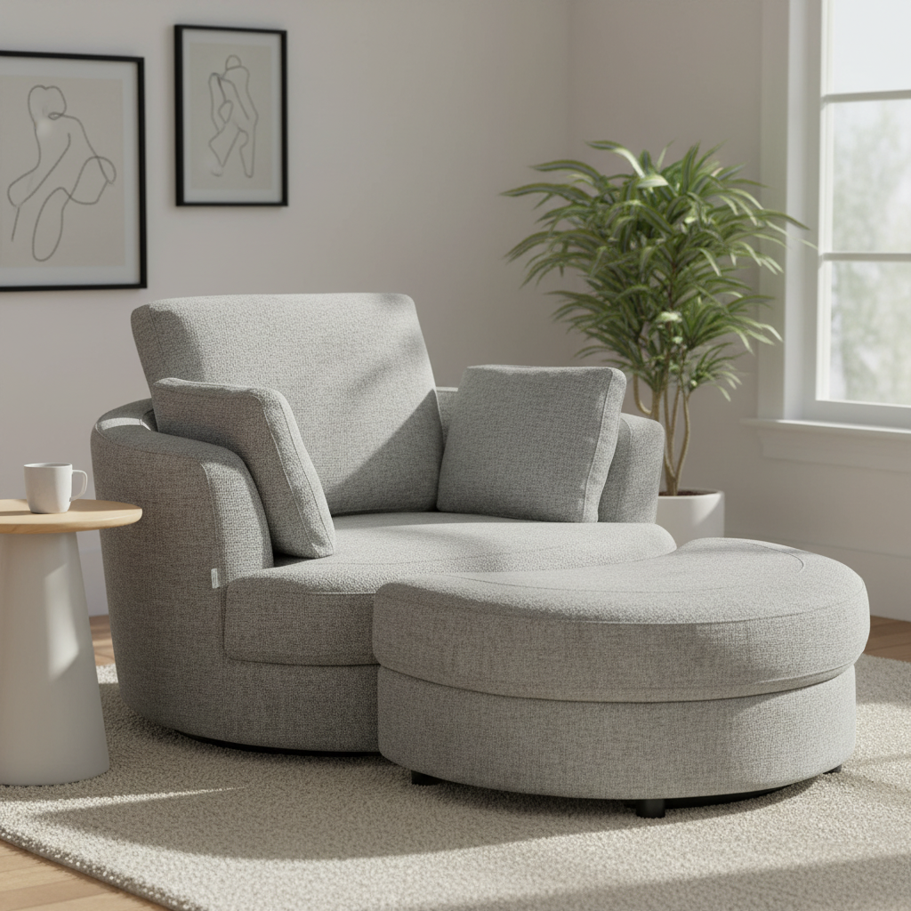 The Cuddle Swivel Chair is designed to transform any space into a haven of comfort and calm. Oversized, ultra-soft, and wrapped in luxurious covers, this is not just a chair—it’s a daily retreat. Whether you’re sipping your morning coffee, sinking into a book, or simply doing nothing at all, the Cuddle Chair wraps you in warmth and softness like a gentle hug.