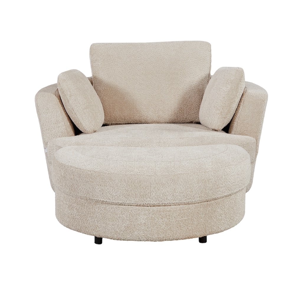 Cuddle Swivel Chair & Ottoman in Boucle Almond Fabric