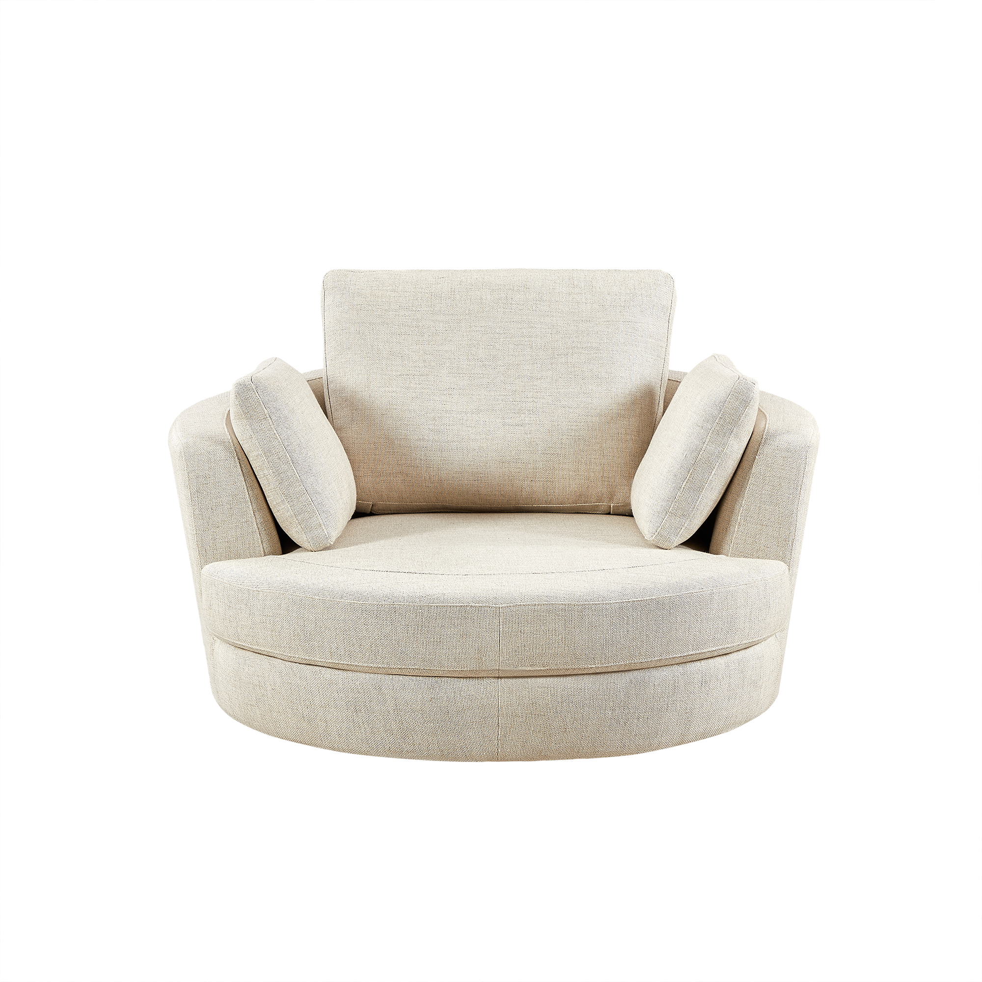 With its smooth swivel base, curved silhouette, and deep, padded seat, the Cuddle Chair moves with you—letting you face the sun, the screen, or your surroundings without lifting a finger. Every detail is considered: from the durable yet cozy fabric to the oversized dimensions that invite lounging, snuggling, or stretching out solo.