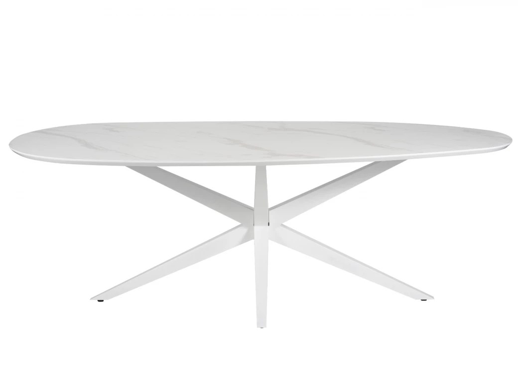 If you’re looking for shape, design, and value, I’m your table! The **Diaz Egg-Shaped Table** features a scratch-resistant laminate top and a stylish painted cross-leg base. With seating for 8, and the ability to comfortably fit 10, this table is as practical as it is stunning. Perfect for both family meals and entertaining guests, the **Diaz Egg-Shaped Table** combines modern elegance with everyday functionality. Offering the ideal balance of style and affordability, I’m the perfect choice for your dining space.
